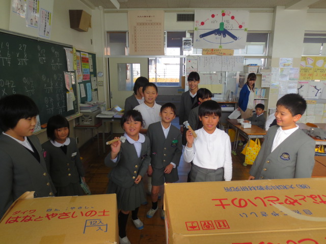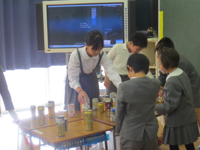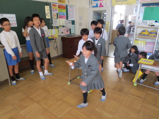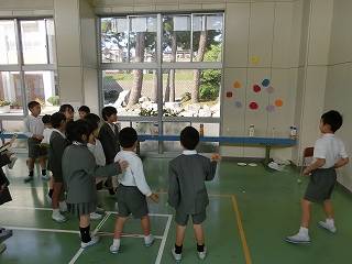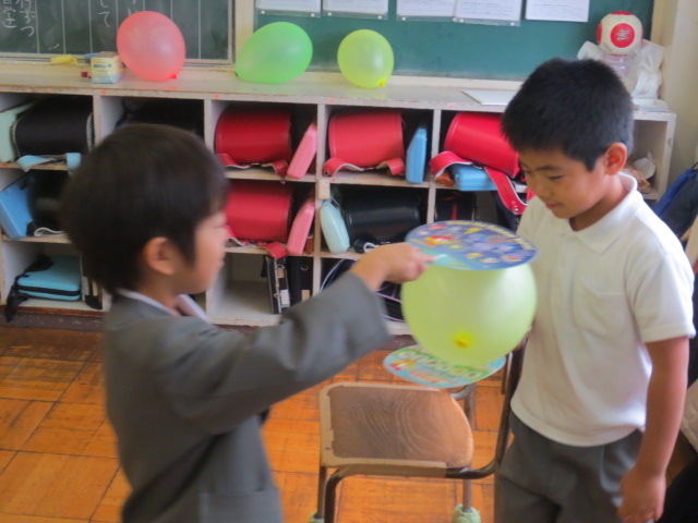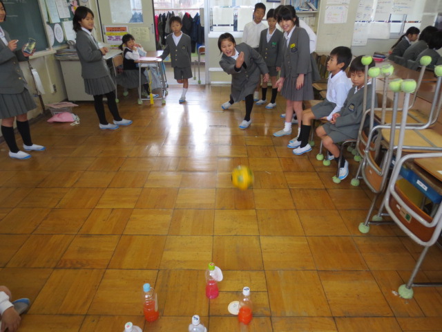 自分たちが苦労して作ったおもちゃで、楽しそうに遊んでいる一年生を見てとても嬉しそうでした。