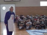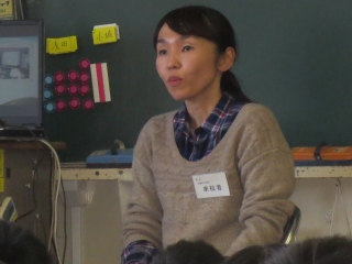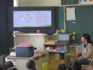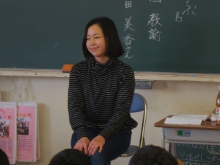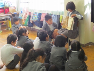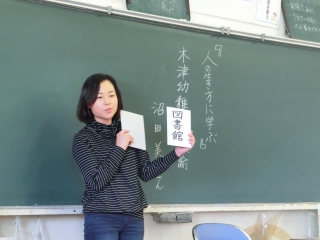 幼稚園教諭の沼田さん。「子どもが大好き」という気持ちが話のいろいろな場面から伝わってきました。漢字クイズや紙芝居も用意して下さり、子ども達も真剣に話を聞いていました。