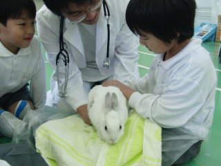 10月30,31日に生活科でうさぎとのふれあいをしました。紙芝居を見て、うさぎにも気持ちが伝わると知り、とても優しく抱っこしていました。心臓の音を聞くこともできました。