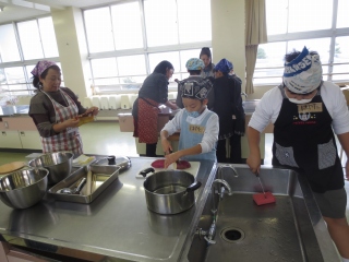 町補導員の高道さんや津幡署のおまわりさんを招いて、おいもパーティーを開きました。調理実習あり、出し物あり、おまわりさんの「いかのおすし」の話ありと楽しい時間を過ごすことができました。今年度は高道さんからの申し出で、楽しい経験をすることができました。子供たちも、出し物を見ていただいたり、調理を一緒にしたりする中で、とても意欲的に活動ができました。高道さんには本当に感謝です。