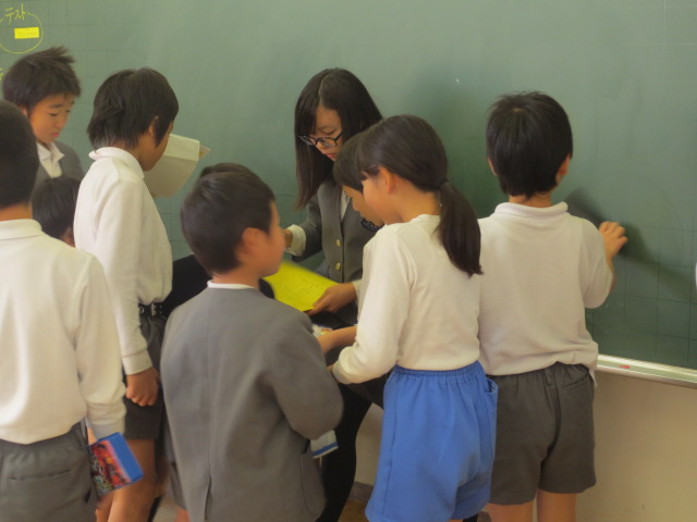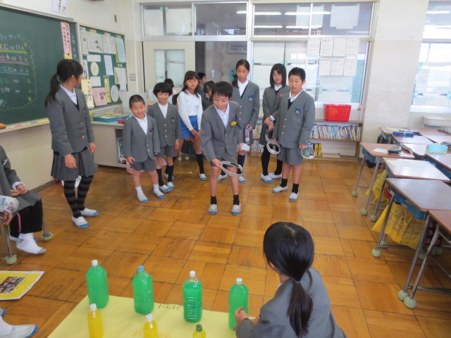 11月7日の2,3時間目に二年生が作ったおもちゃで遊んでもらう「おもちゃランド」を開催し、一年生を招待しました。
