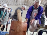 「収穫祭」として餅つき体験をさせてもらいました。高道さんに手取り足取り教えていただきながらの餅つき体験でしたが、自分のついたお餅を食べて子ども達は大満足!の様子でした。この体験を通して子ども達は、食べ物に対する感謝の気持ちを改めて実感することができました。