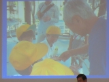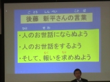 看護師の岡村さん。パワーポイントを使って、看護師の仕事、大変なこと、嬉しかったことなど丁寧にお話ししていただきました。