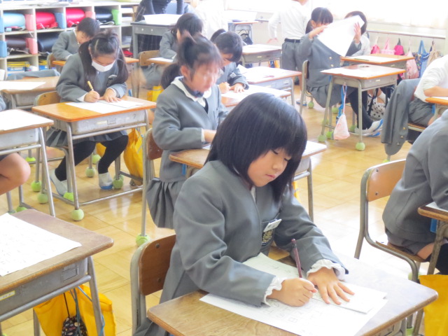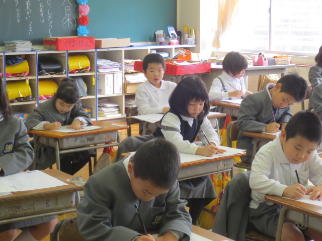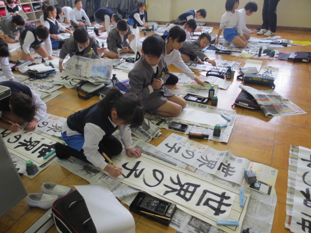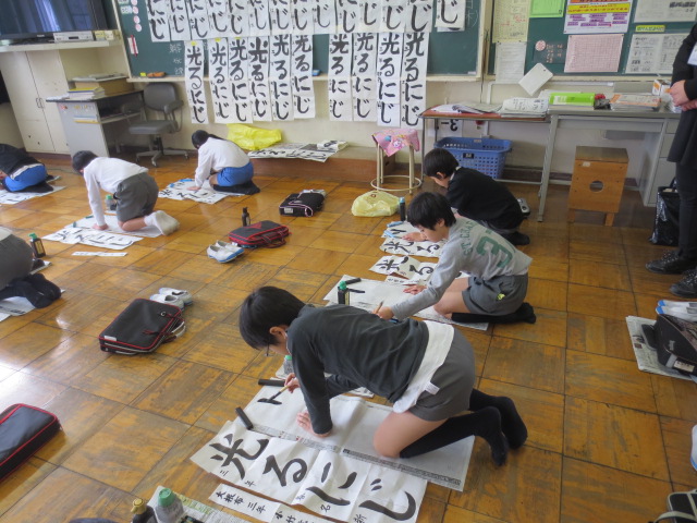 冬休みの練習の成果を発揮しようと気合いを入れて書初めに臨んでいました。12月に初めて書いたときに比べると大きく成長したのがとてもよくわかります。