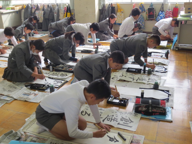 明けましておめでとうございます。本日、書初め大会が行われました。