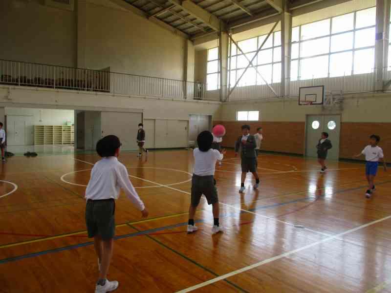 1~4年生が遠足の日は広々と体育館を使うことができ、ドッジボールとバスケットボールを楽しんでいました。