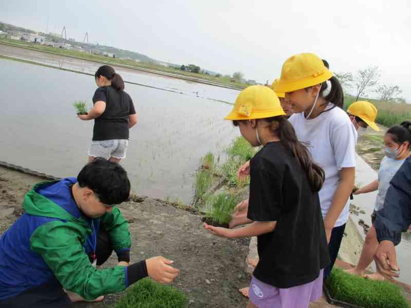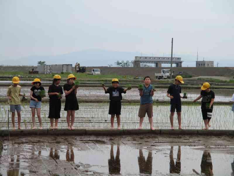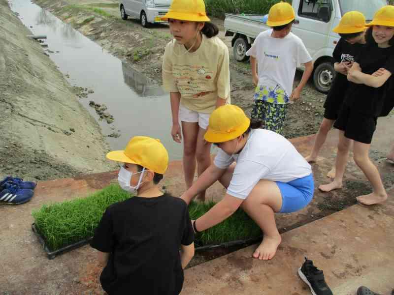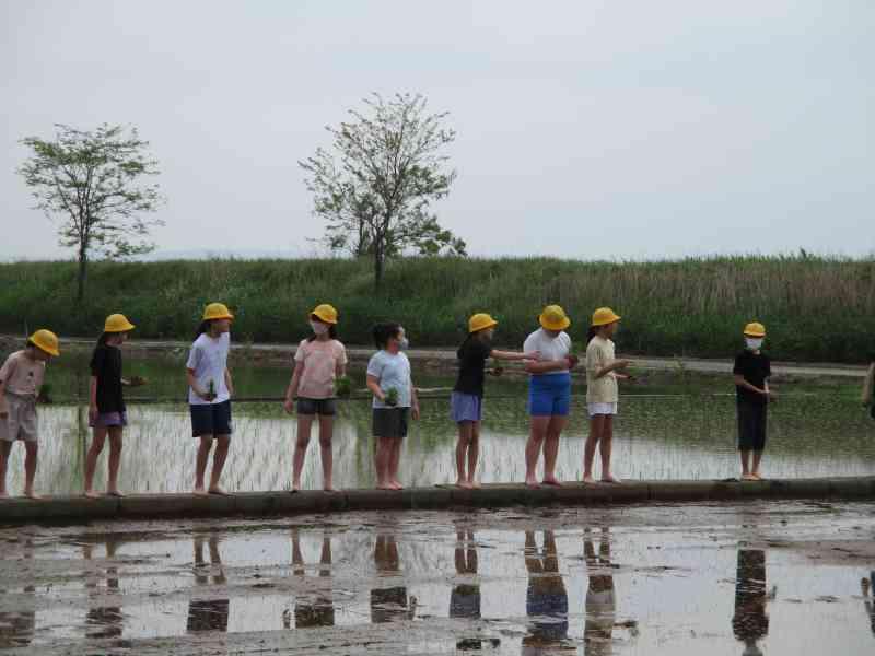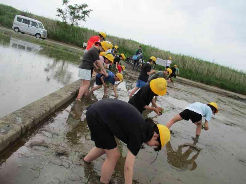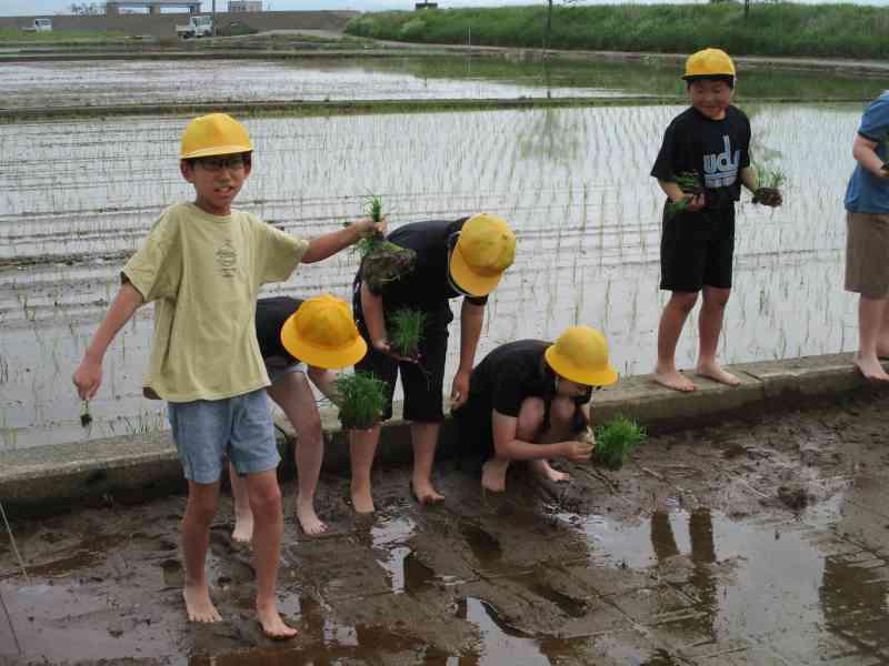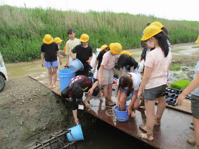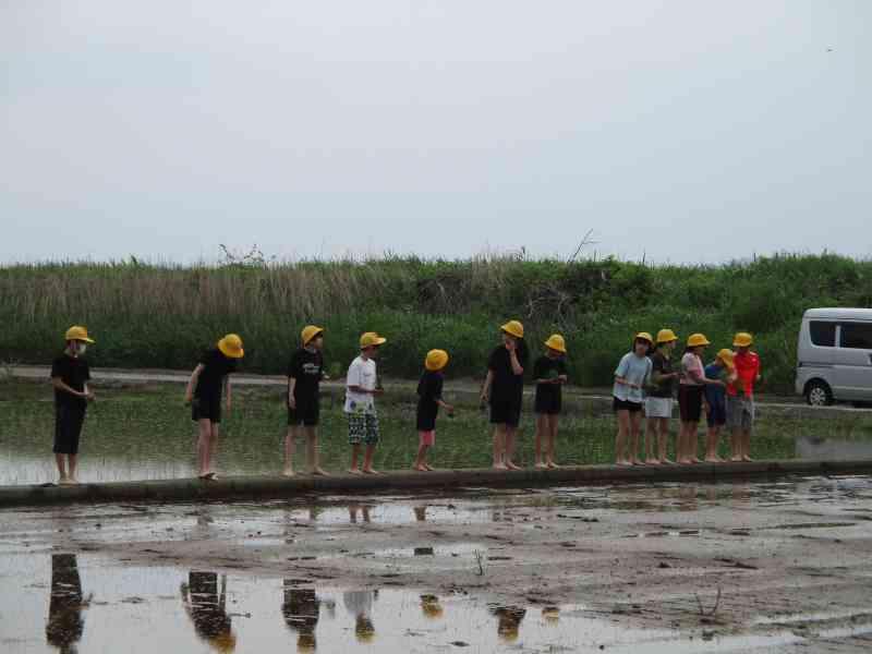 最初は、なかなか田んぼの中に入れなかった子もいましたが、入ってみるととても楽しそうに苗を植えていました。