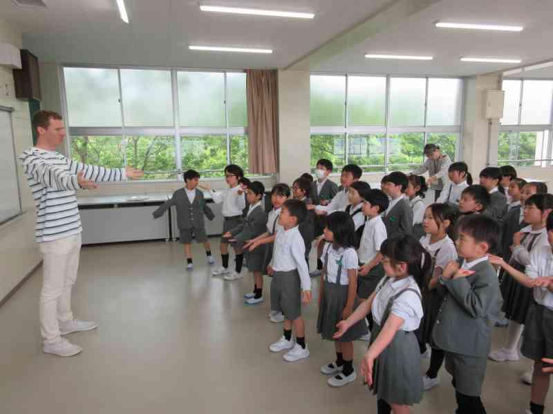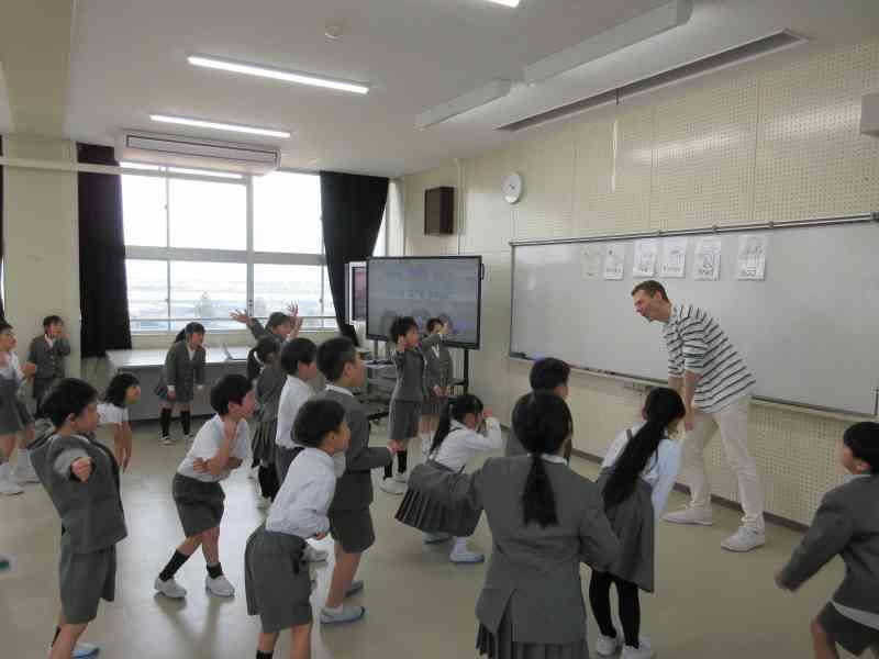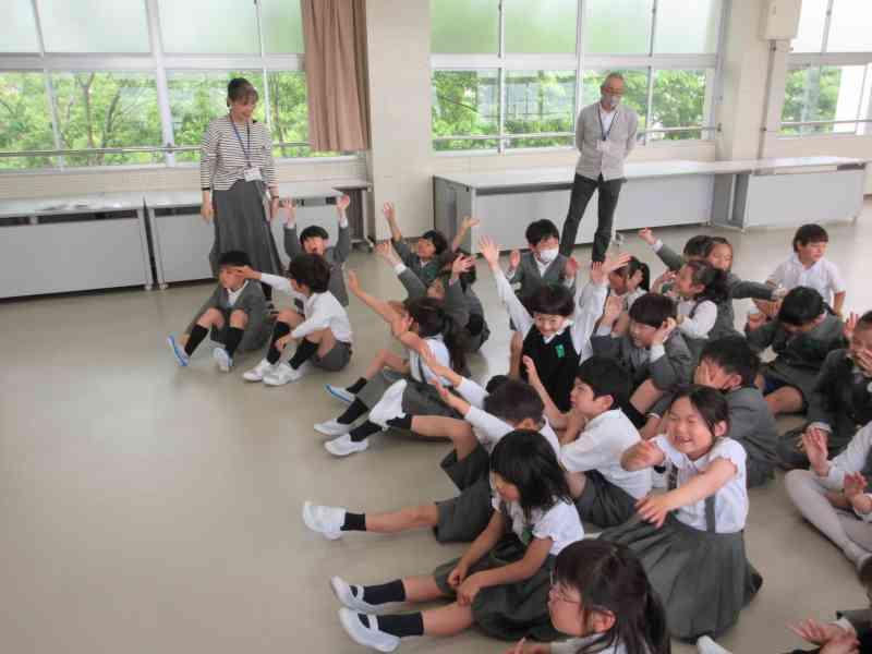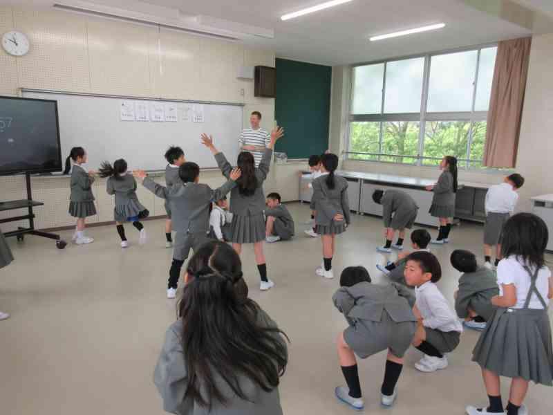 ジェスチャーを使って体いっぱい動かしながら、外国語に親しみました。