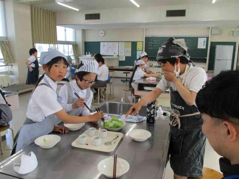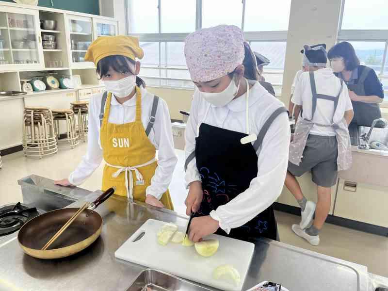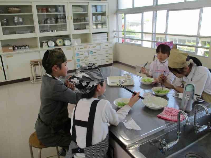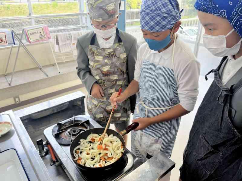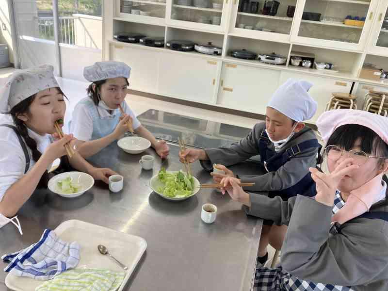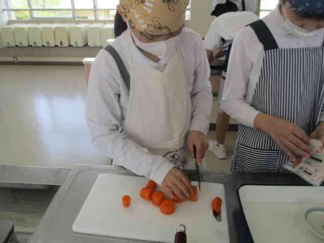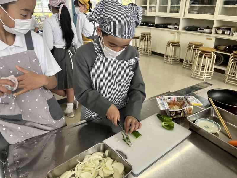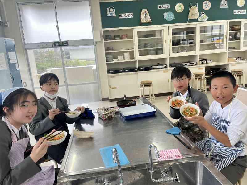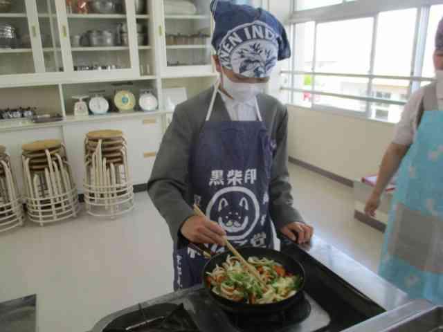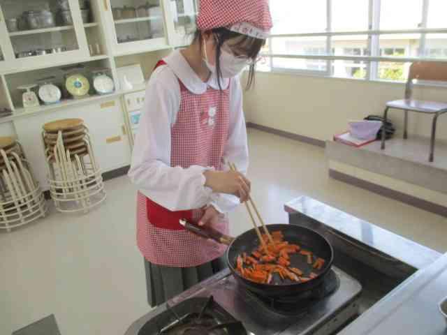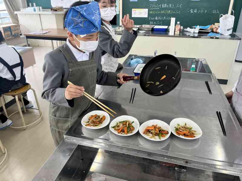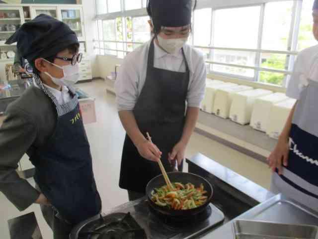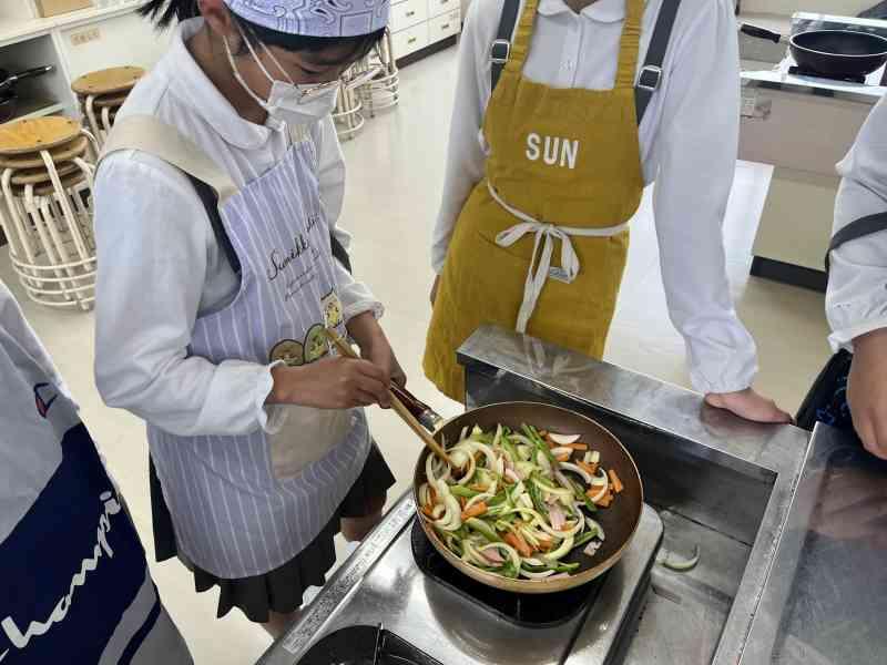野菜の切り方の違い、フライパンの正しい使い方、炒め方の順序などに気を付けて調理実習に取り組むことができました。お家でも是非作ってみてくださいね。