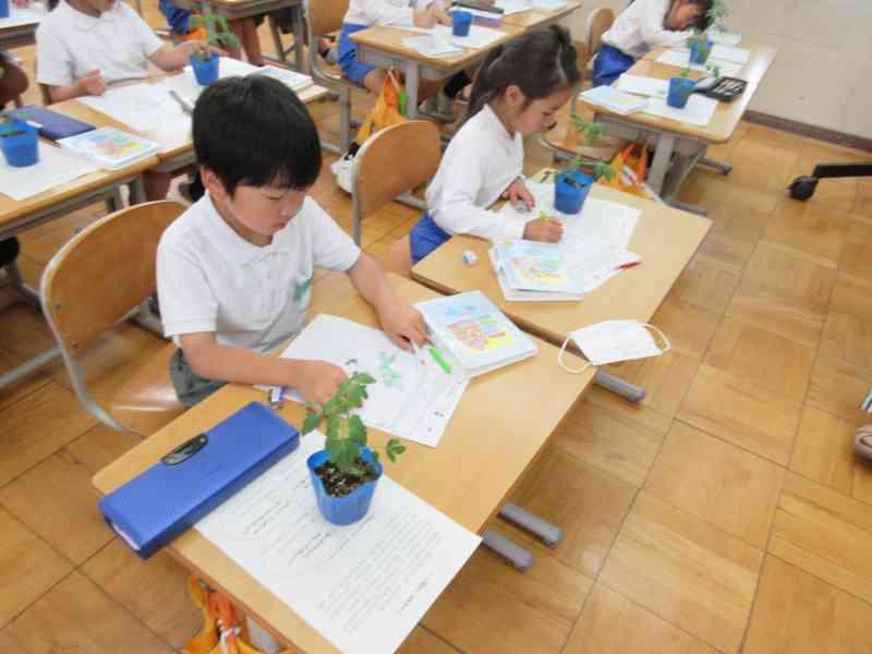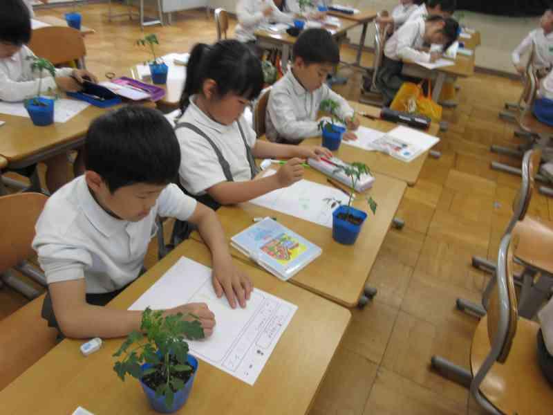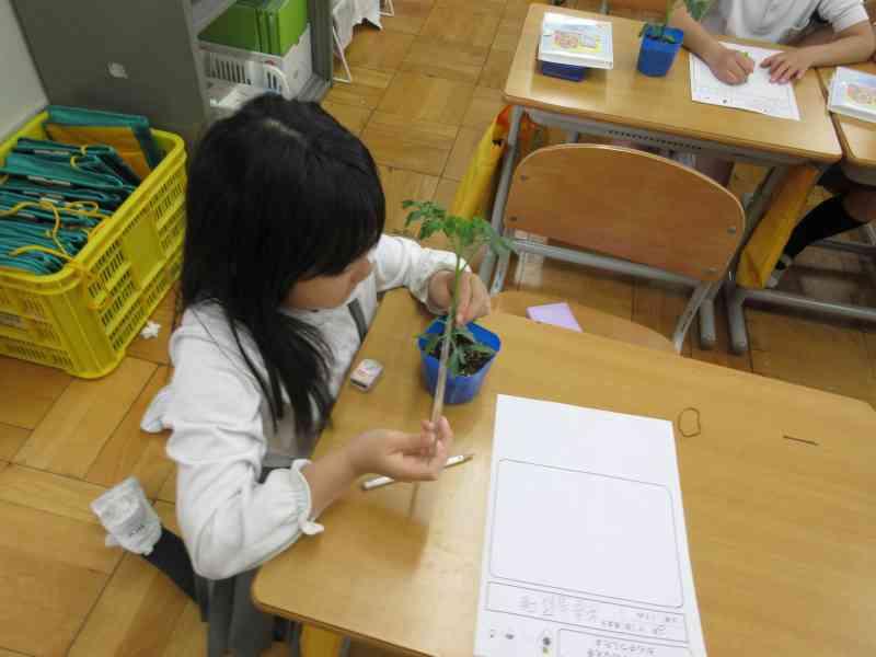 5月13日にはひとりひとりミニトマトの苗を観察しました。