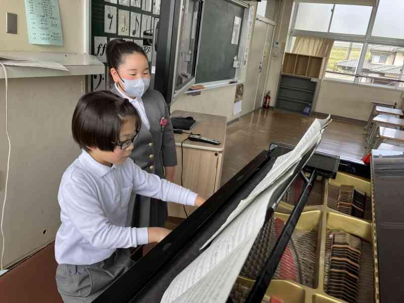 伴奏者の二人は休み時間も音楽室に通い、練習を重ねています。