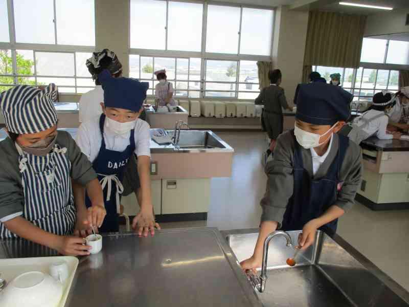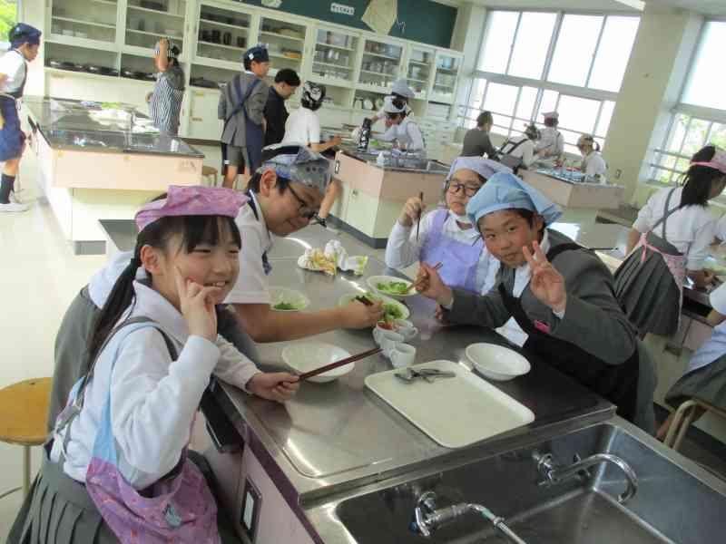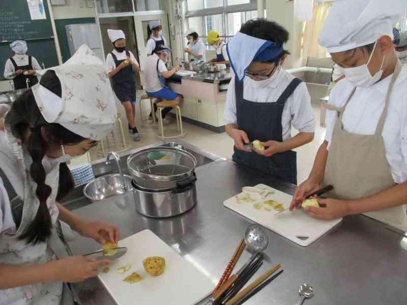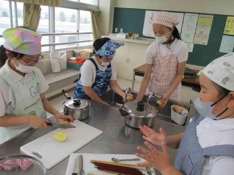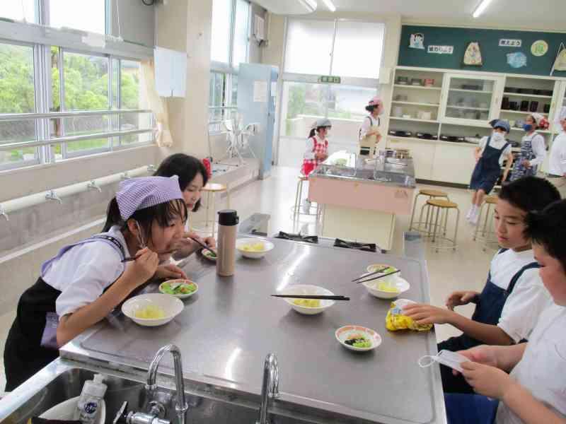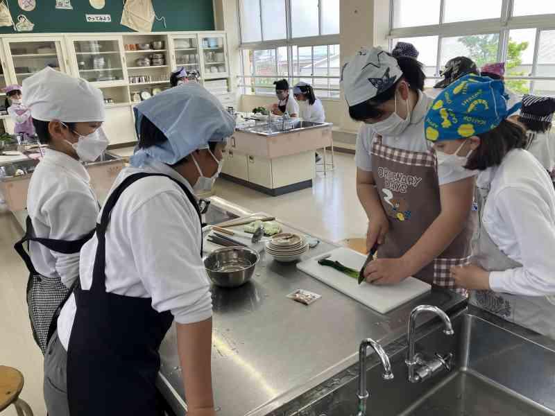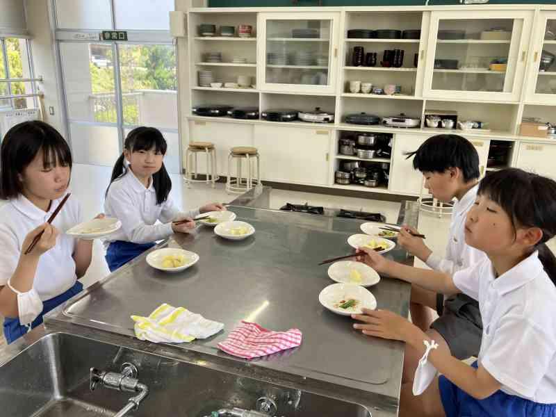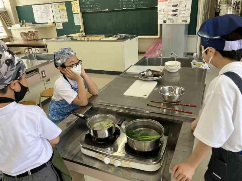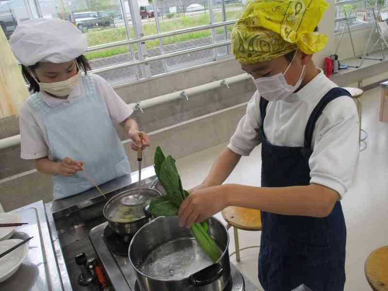 今回の調理実習では、小松菜のおひたしと、ゆでいもを作りました。