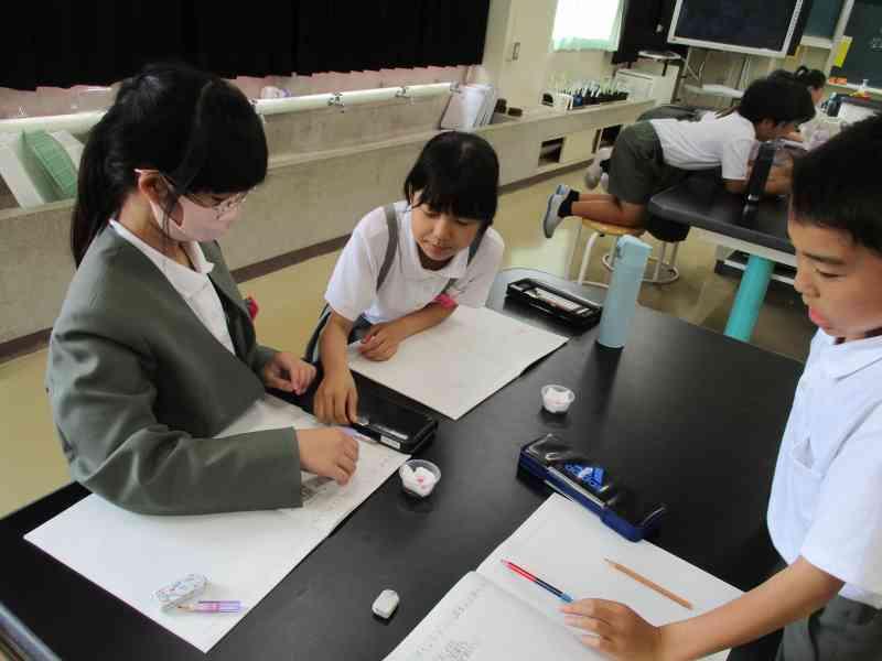 実物を触ったり見たりして、大きさを実感しながら学びました。