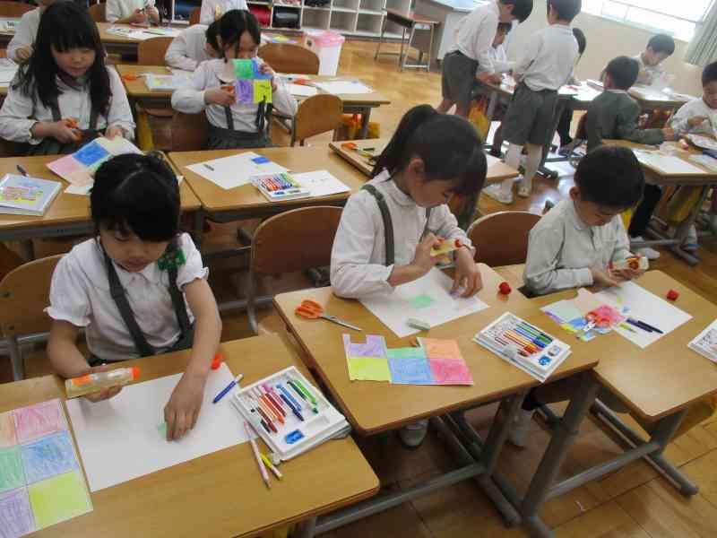 図画工作の時間に「ひかりのプレゼント」という作品を作りました。