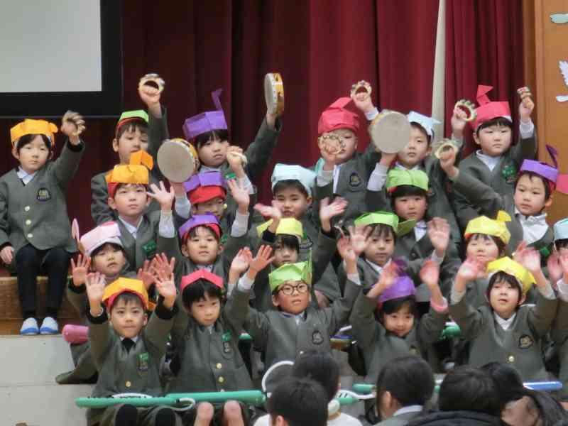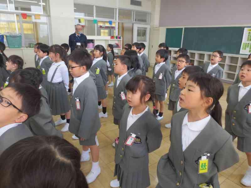 最後には、4月の今月の歌「♪ 友だち」を全校で合唱しました。体をゆらしながら笑顔で元気いっぱい歌えました。