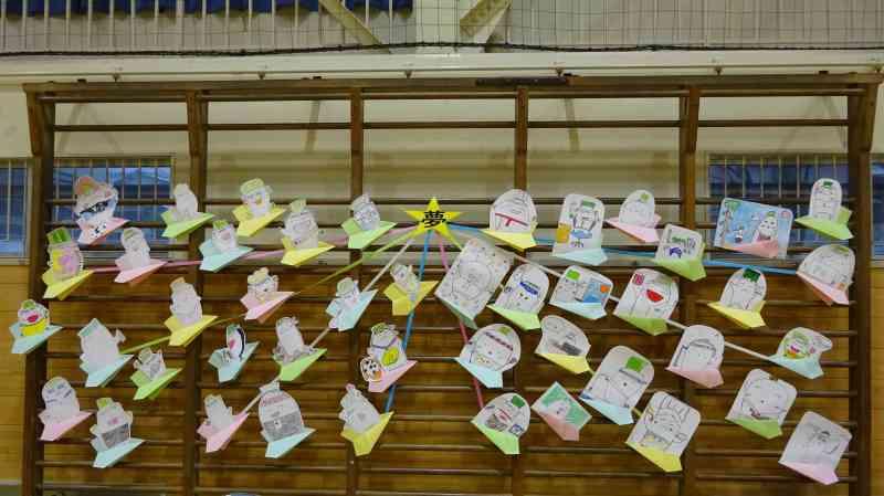 2年生は、6年生の将来の夢の姿をしたねぶさんを描き、壁面を飾り付けました。