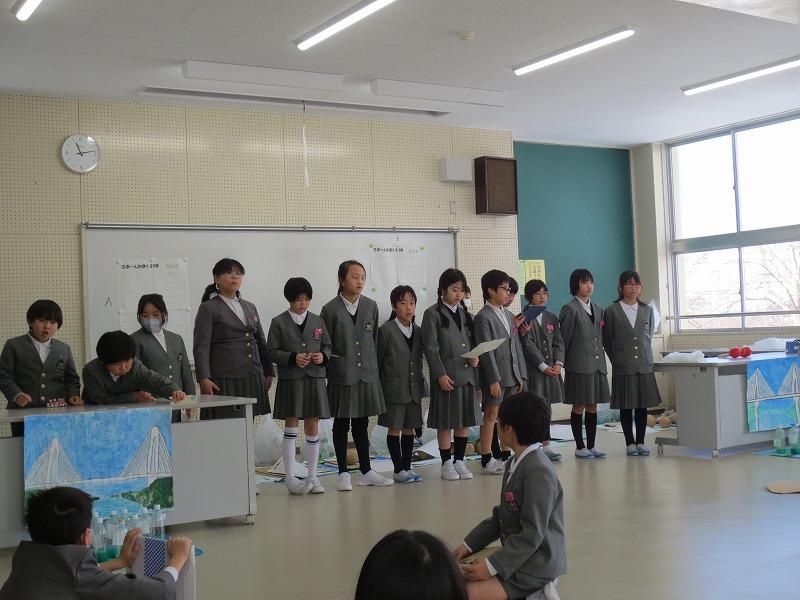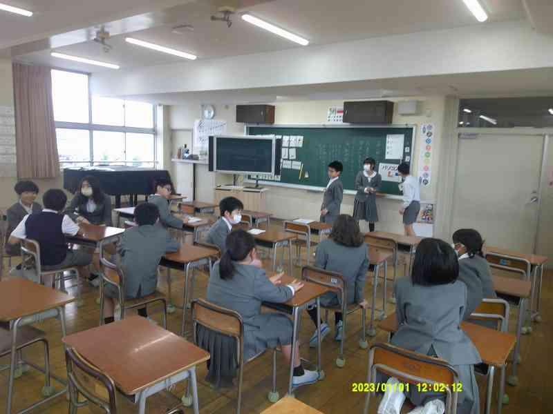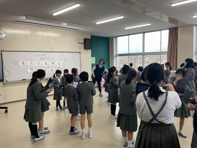 3月17日(月)の3限に、4年生全体で自分の日課を英語で伝え合う活動を行いました。