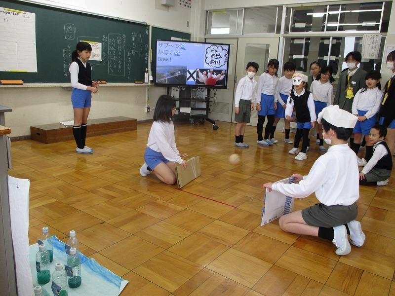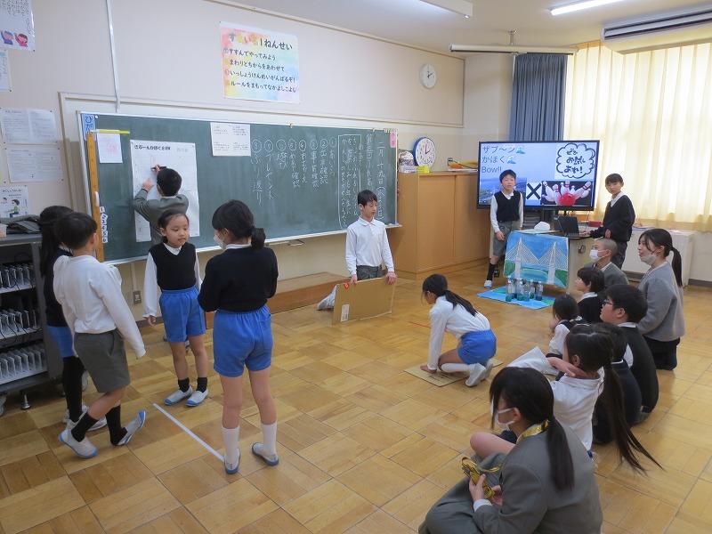 2月19日、4年生がこれまで総合の時間に準備を進めてきたゆるスポーツ「ざぶーんかほくBOW」の発表を行いました。