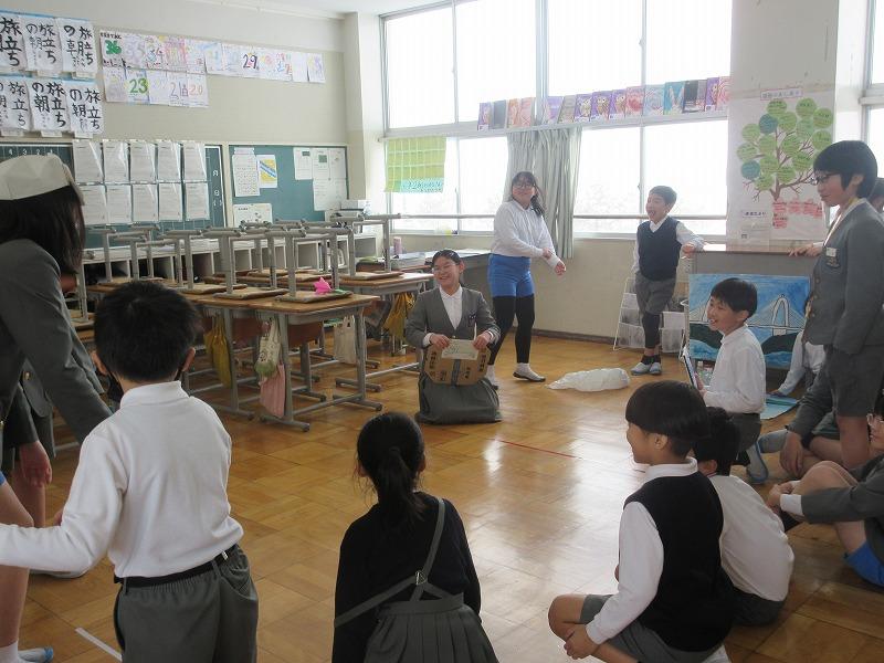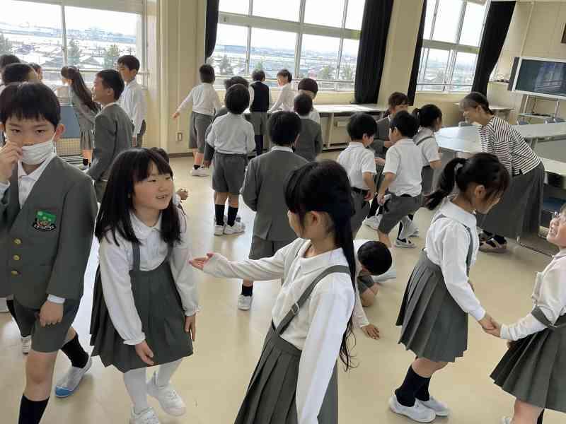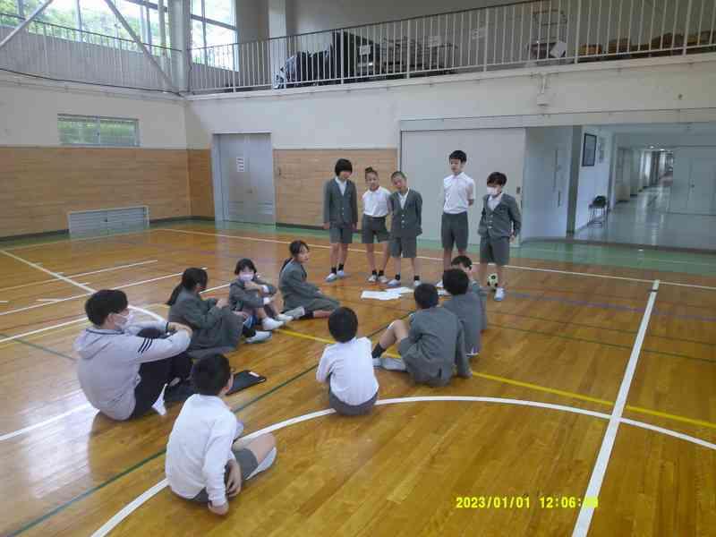 5限は、ふれあいタイムで、それぞれのふれあいグループごとに集まり、4年生が、メンバー全員に遊び方を紹介し、みんなでゆるスポーツをやってみました。6年生にとって最後のふれあいタイムを4年生が考案した遊びで全校に楽しんでもらうことができました。