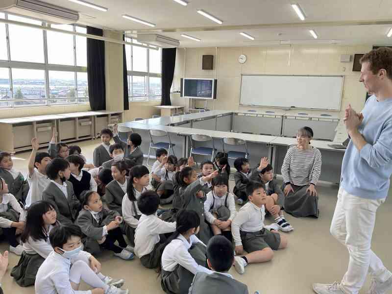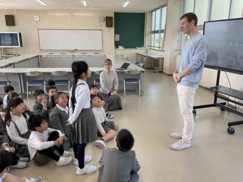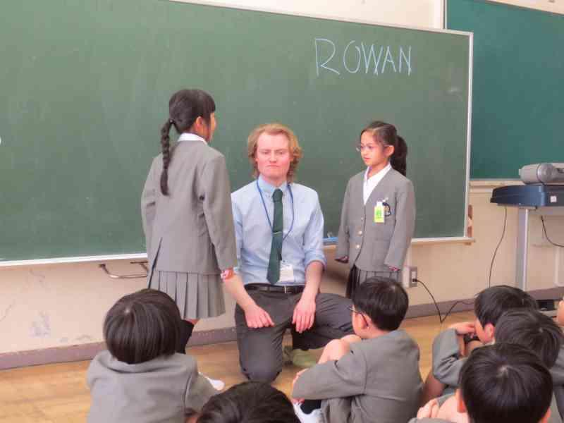 初めて会うジャスティン先生に自分の名前や好きなものを伝えました。