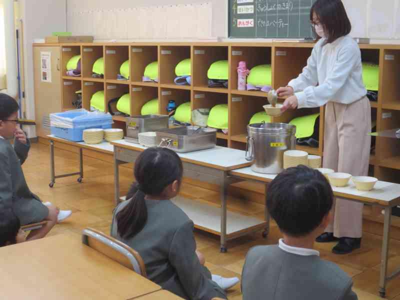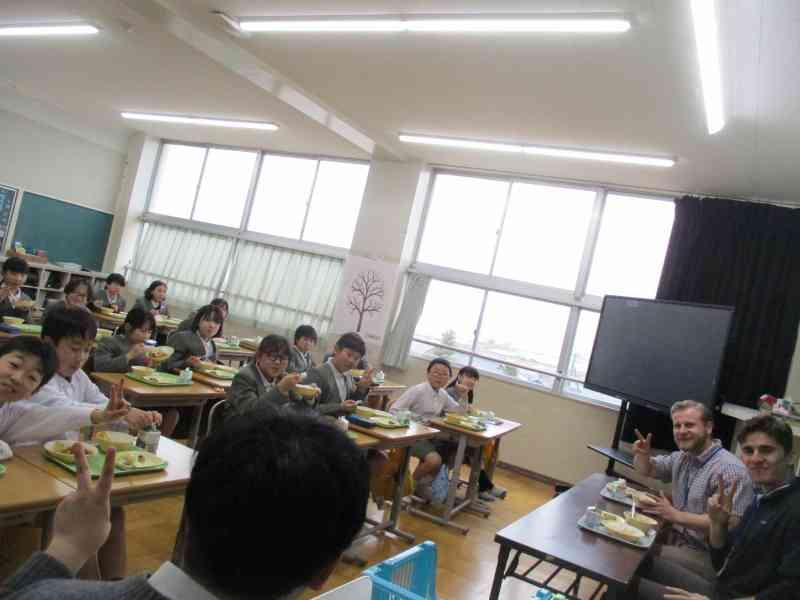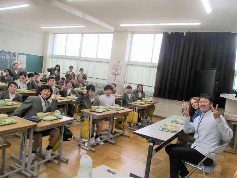 国際交流員の方たちと一緒に給食も食べました。