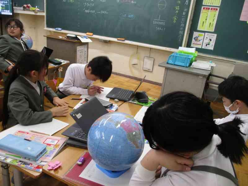 地球儀を使って学習しました。