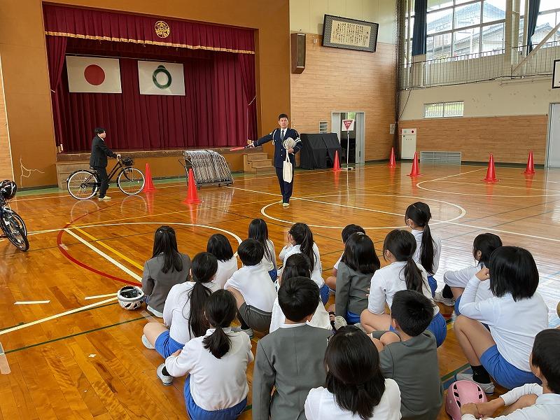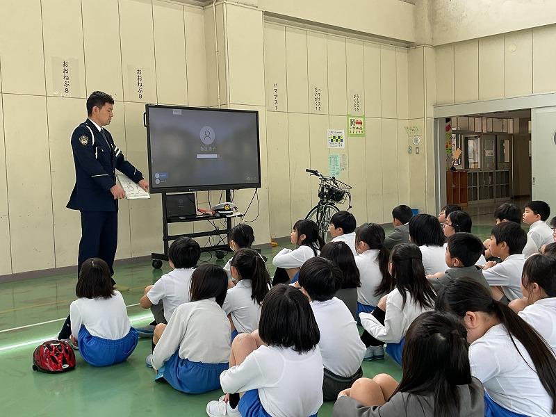 4年生は、「自転車の安全な乗り方」について、警察署の方に来ていただき、道路を走る際のルールやマナーについて学びました。