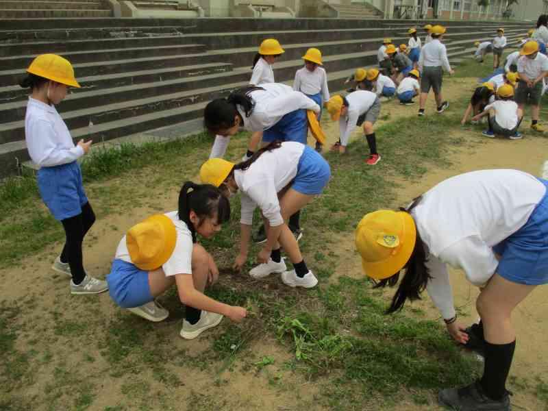 マラソン大会に向けて、かけ足運動が始まるので、走りやすいように一生懸命草むしりをしてくれました。