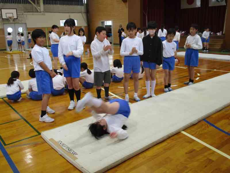 5年生が昨年挑戦した器械運動に、今年は4年生が挑戦します。