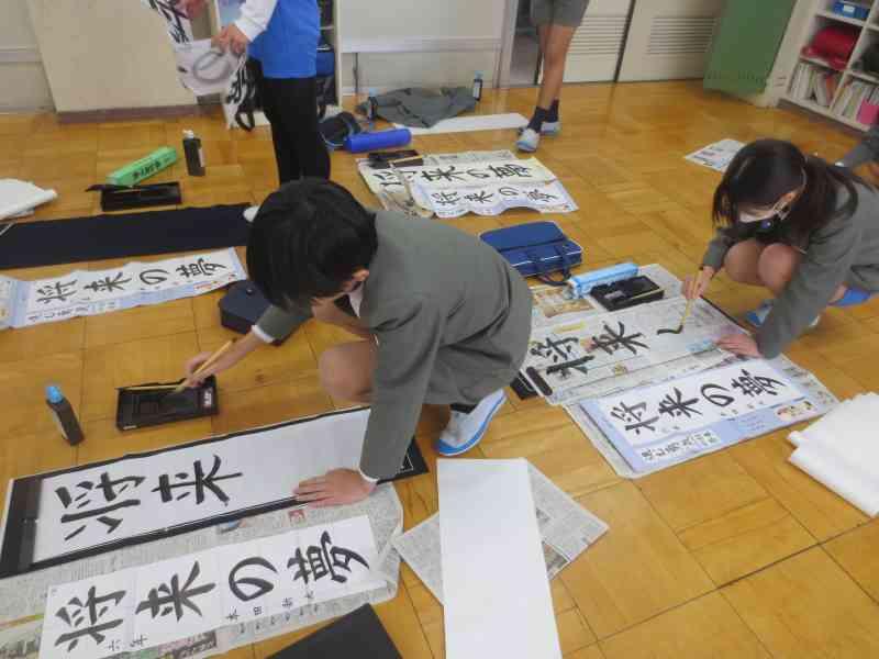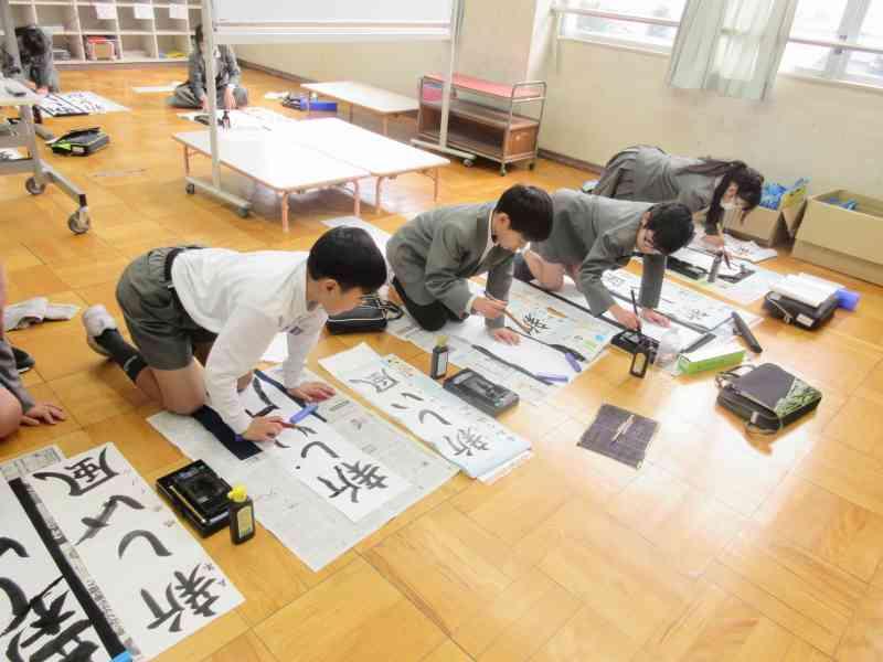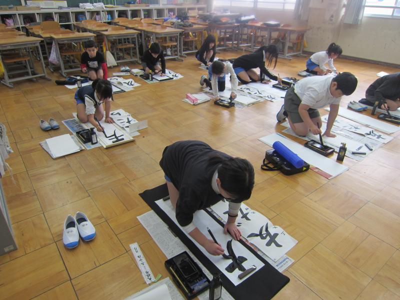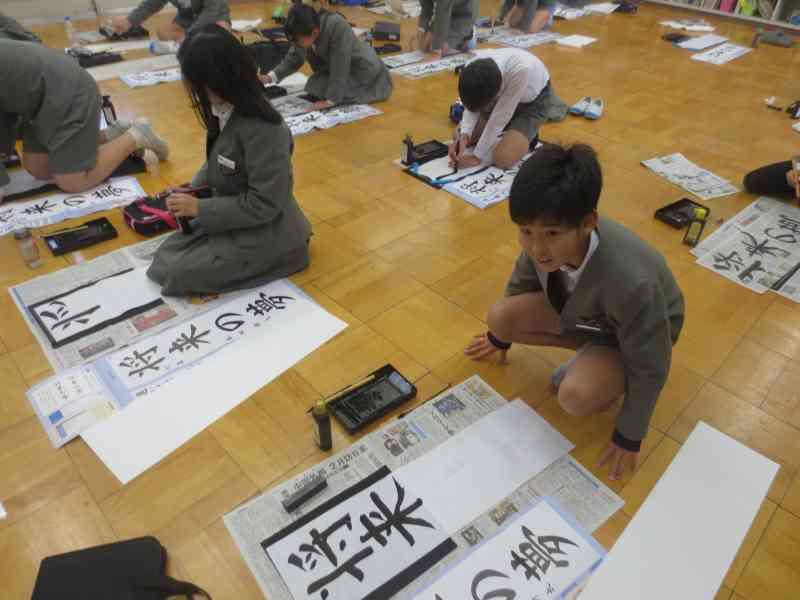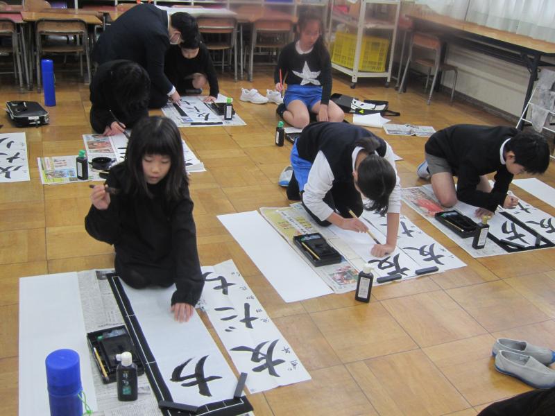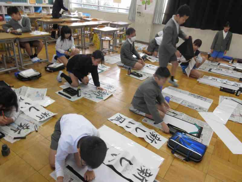 書き初め大会では、一人一人がじっくりと自分の字と向き合い、何枚も書き直しながら丁寧に取り組んでいる姿がとっても素敵でした。