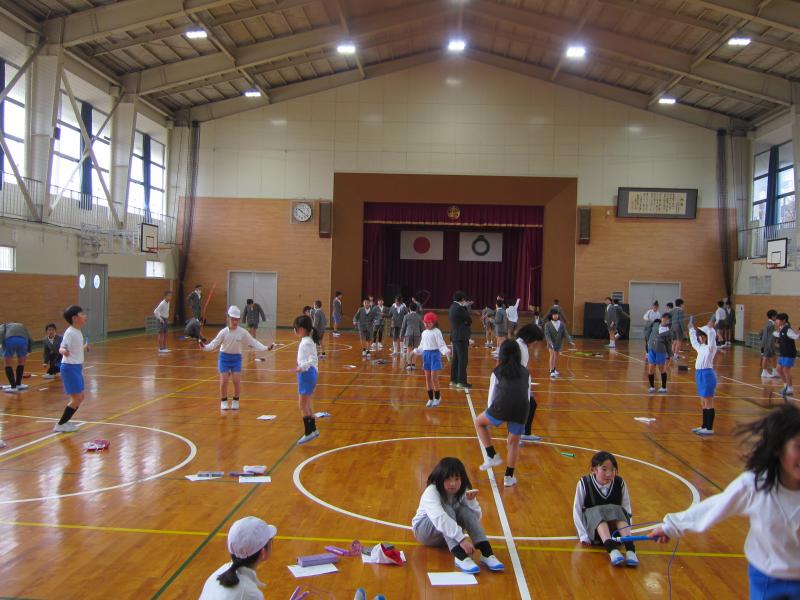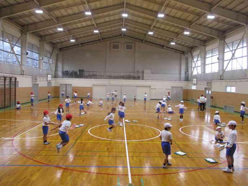 1,3,5年生が取り組む日と、2,4,6年生が取り組む日と交代で、体育館やプレイルームなどを使って行っています。