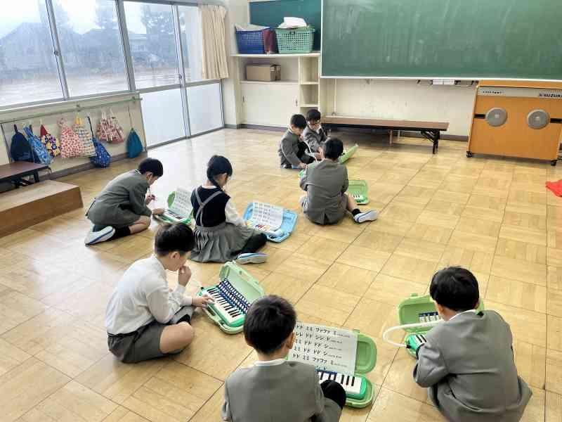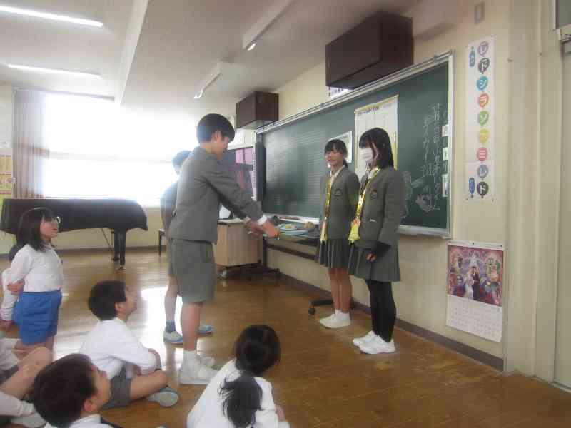 本番では、校歌、鍵盤ハーモニカでの演奏、手遊び歌の発表や、各クラスに分かれて授業体験やプレゼント渡しも行いました。
