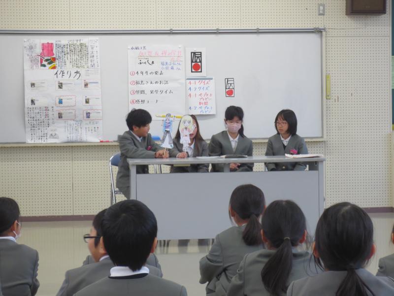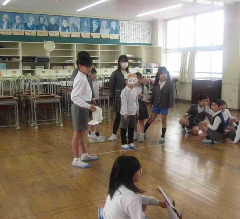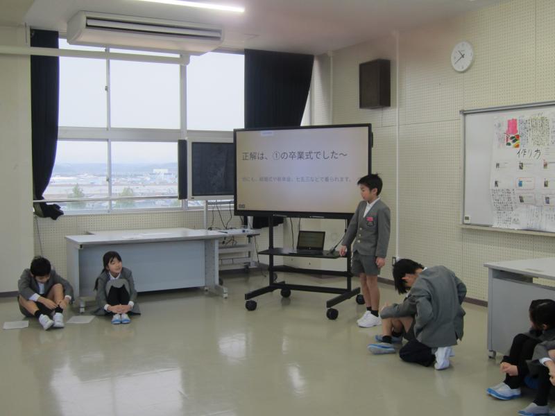 まずは、4年生が調べたことを「クイズ」「ペープサート」「プレゼン」