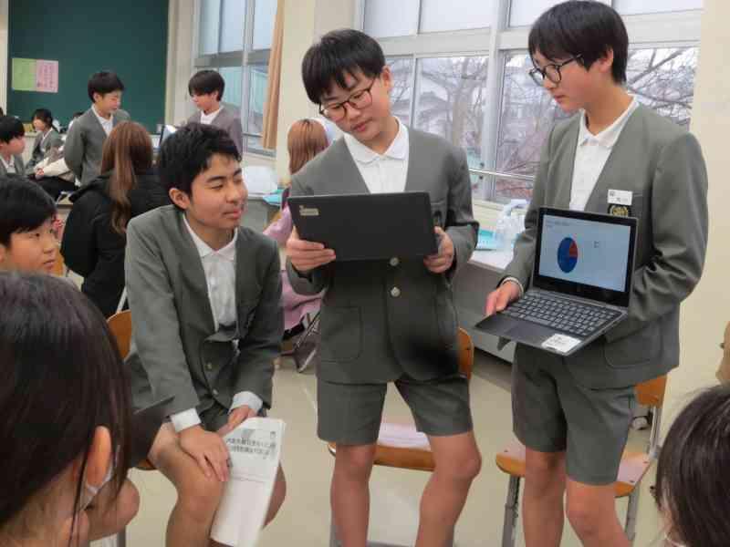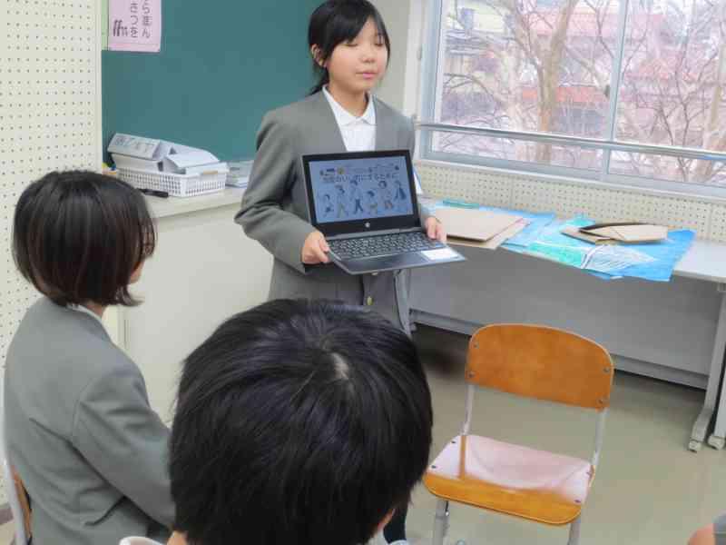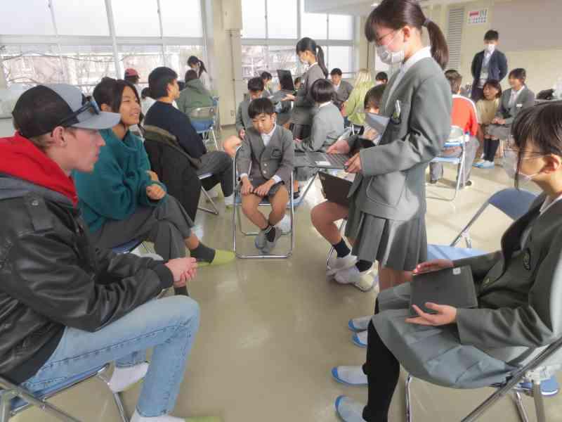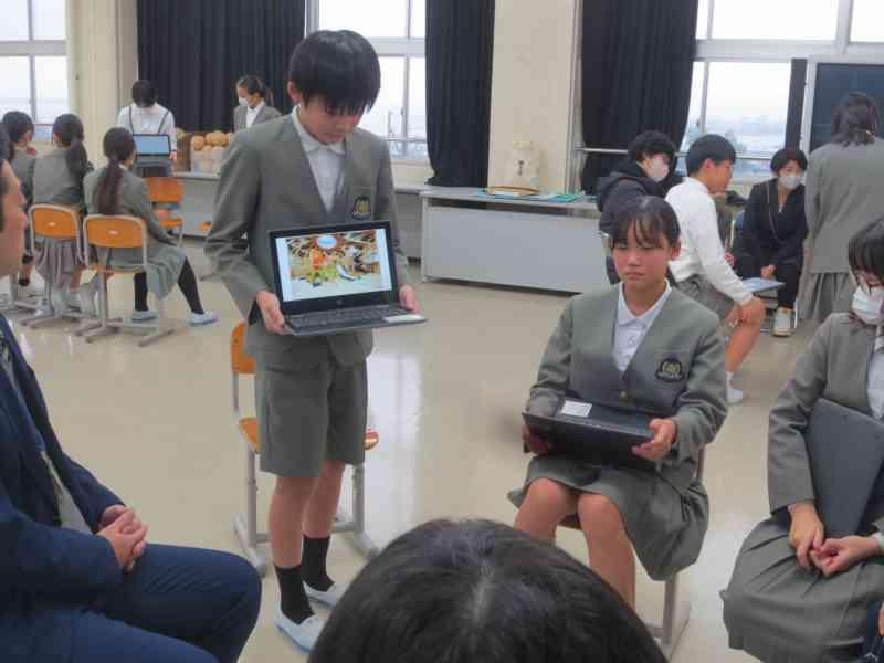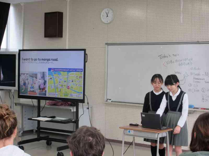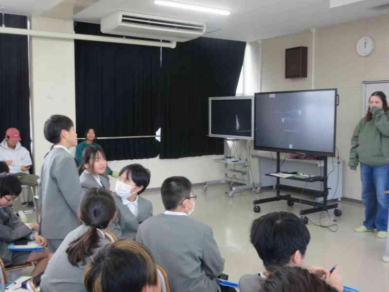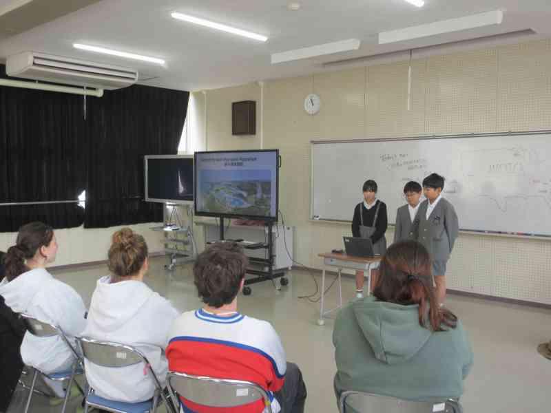 本日、3,4限目に外国語学習で、アメリカの方々をお招きし、交流を行いました。12月から今日の「日本のおすすめスポット紹介」をするための発表準備をしてきました。どちらのクラスも発表後に「Where do you want to go?」と問いかけると、自分たちが紹介した都道府県を言ってもらうことができ、達成感を感じているようでした。