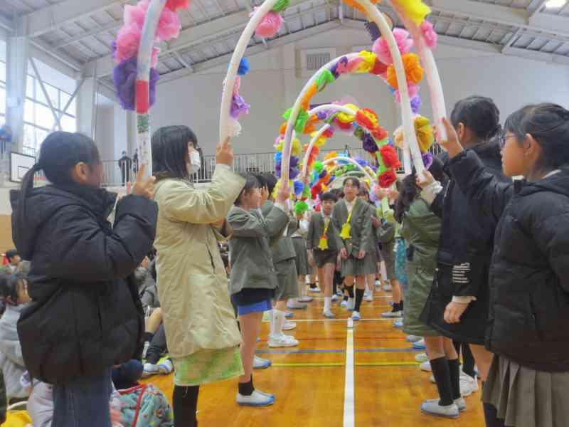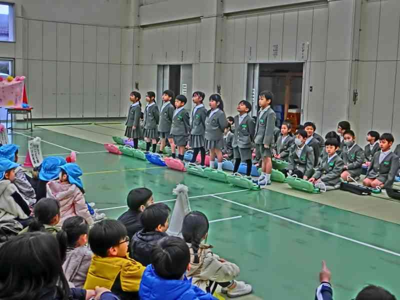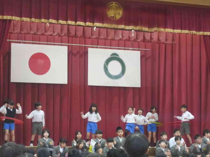 2年生からは、得意技を披露して、6年生へエールを贈りました。ダンス、なわとび、フラフープ、マジック、クイズ、マラソン、歌など一人一人の得意なところがピカピカ輝きながら、次々に移り変わる出し物でした。