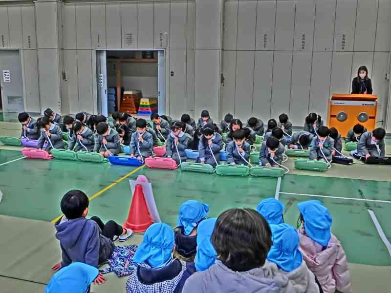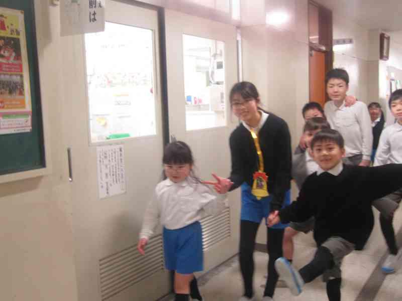 6年生が回す役をして、下の学年に教える姿がたくさんありました。