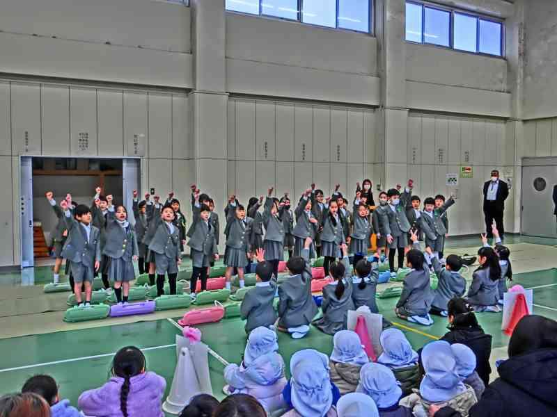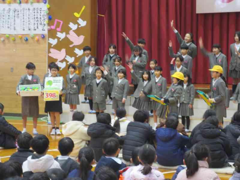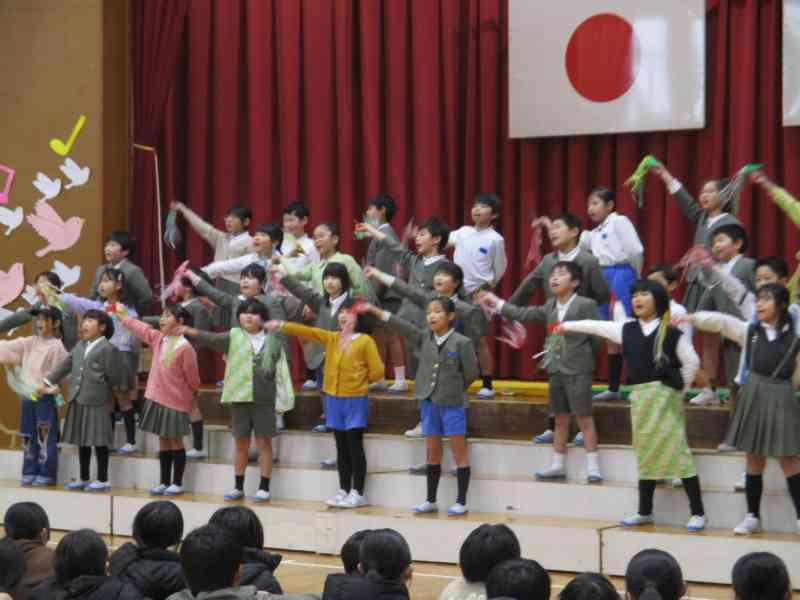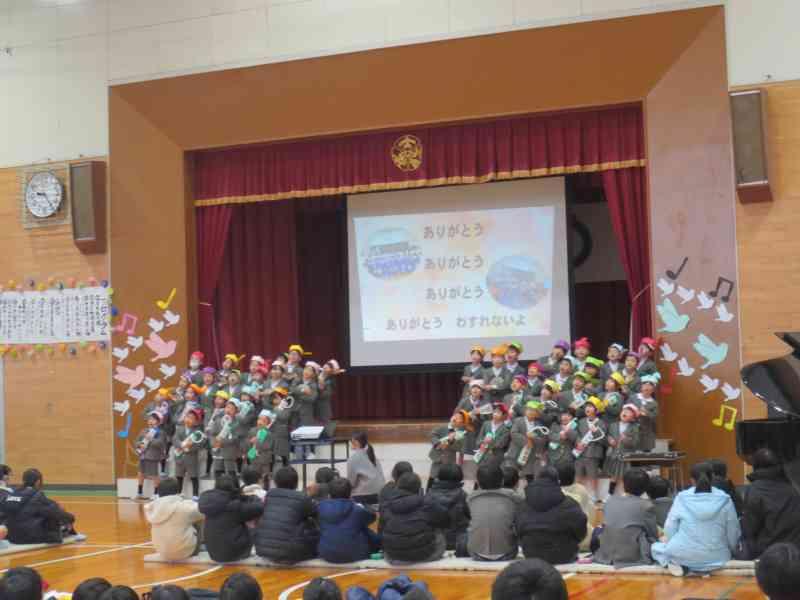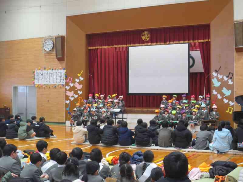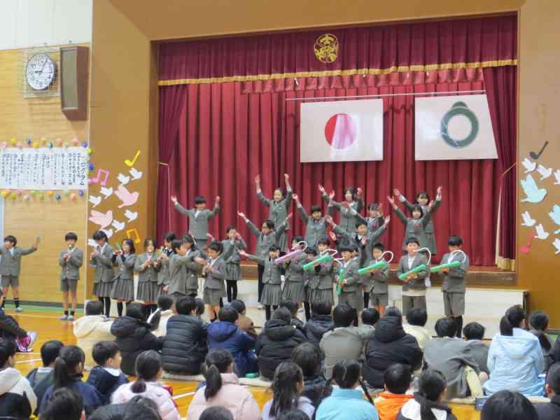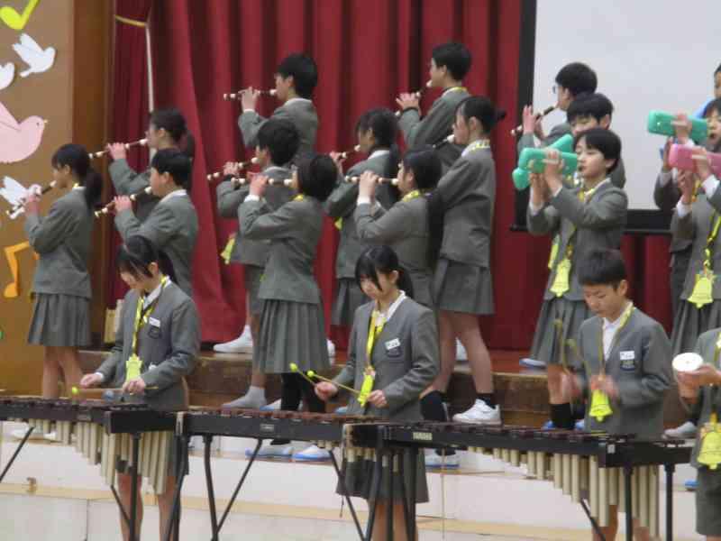 6年生は、合奏と言葉でみんなへの感謝を伝えました。「パラダイスハズノーボーダー」は速いテンポでしたが、動きと演奏をばっちり合わせることができました。さすが6年生!と思わせる迫力でした。