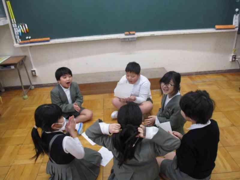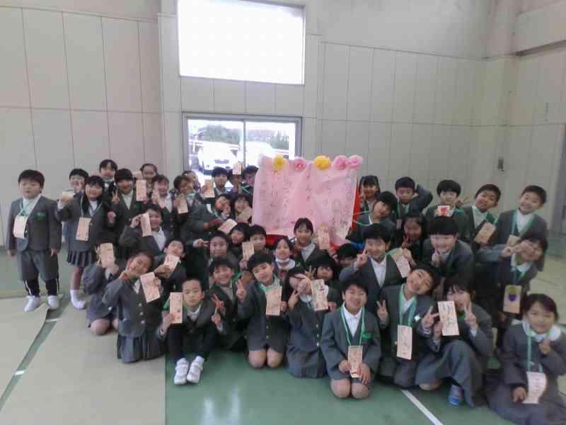 5限目は、最後のふれあいタイムの時間を過ごしました。今回のメインは4年生が考えた「ざぶ~ん かほく BO」というゲームをして、全校みんなが楽しむことでした。4年生が、グループの中心となってゲームを運営し、緊張しながらも周りを盛り上げてくれました。そのあと1~5年生で作成したメッセージカードを6年生に渡しました。6年生からは、グループの一人一人にきらきらカードが渡され、今までの感謝の気持ちを伝え合いました。この1年間でふれあいタイムだけではなく、日々のたてわりそうじを通してもとても仲良くなったふれあいグループでした。
