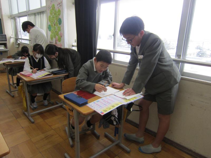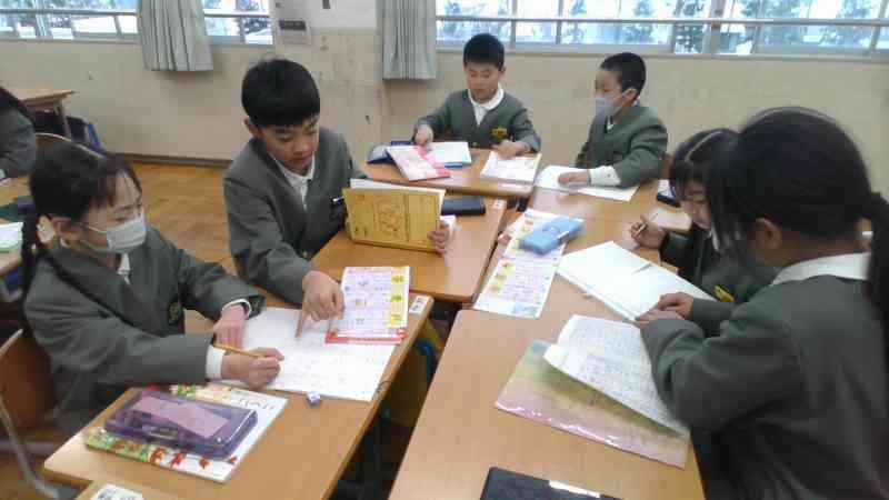 2月になり、2年生も自学に取り組みはじめました。今回は、国語(主に漢字)の自学の仕方を、5年生に教えてもらいました。
