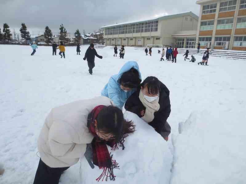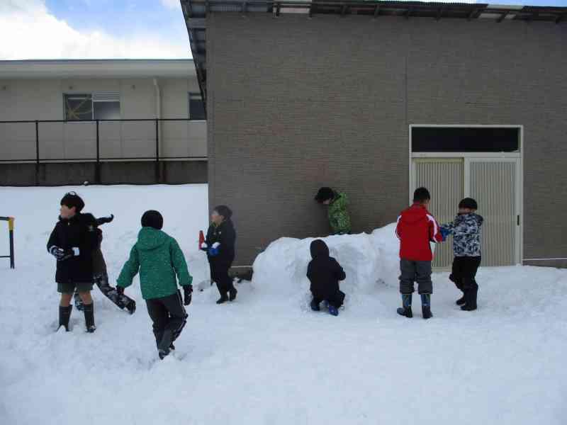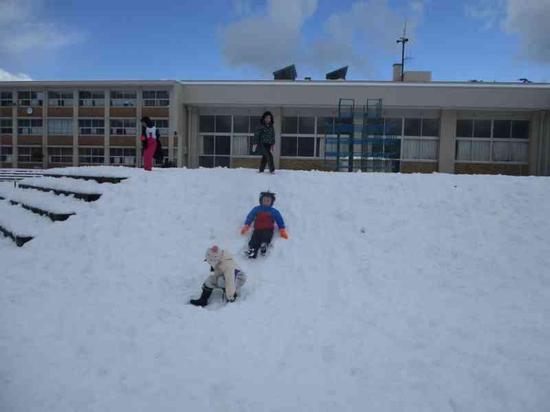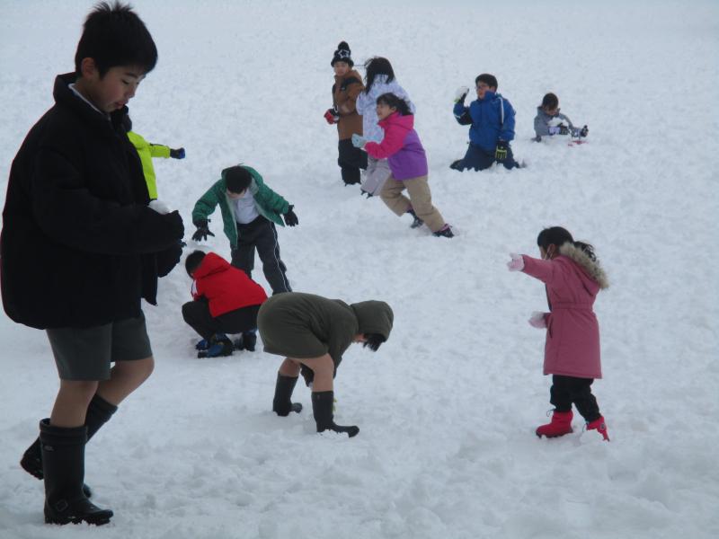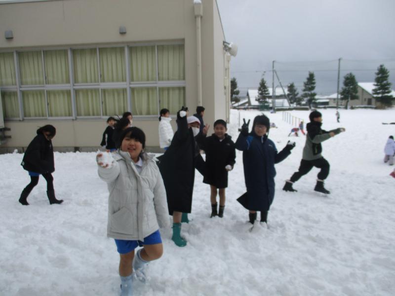 休み時間は、久しぶりの雪遊びをするねぶっ子で運動場もにぎわい、歓声があがっていました。
