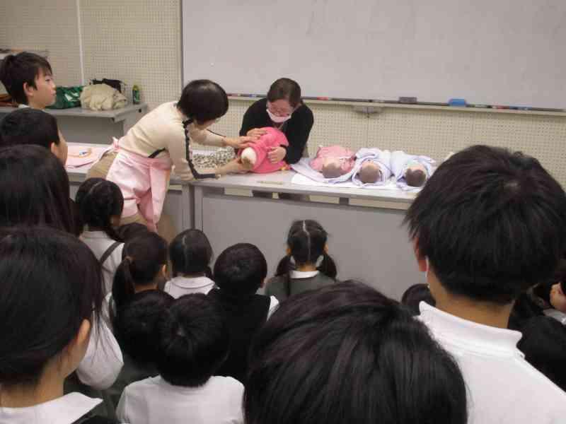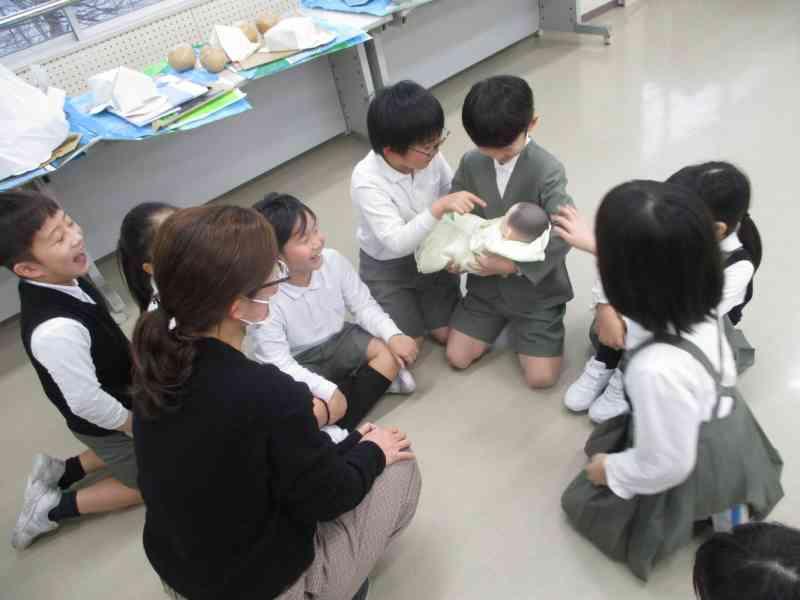 助産師さんをお招きし、自分たちがどのようにお腹の中で育ち、どのように生まれてきたのかをお話していただきました。