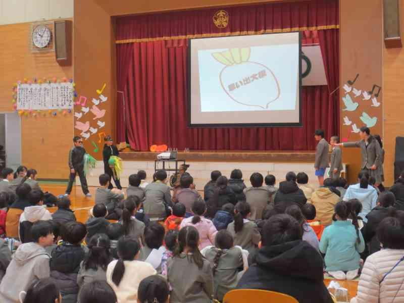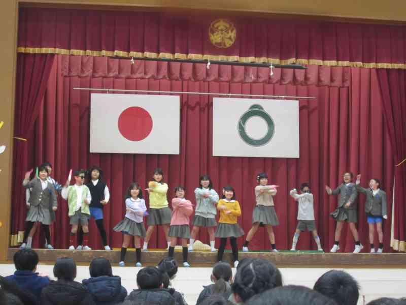 4年生は、劇と歌を中心に感謝の気持ちを伝えました。6年生のこれまでの各学年での思い出の出来事が織り交ぜられていました。セリフを考えるところから練習計画まで、子供たち自身でほとんど進め、意見を出し合いながら一生懸命作り上げました。
