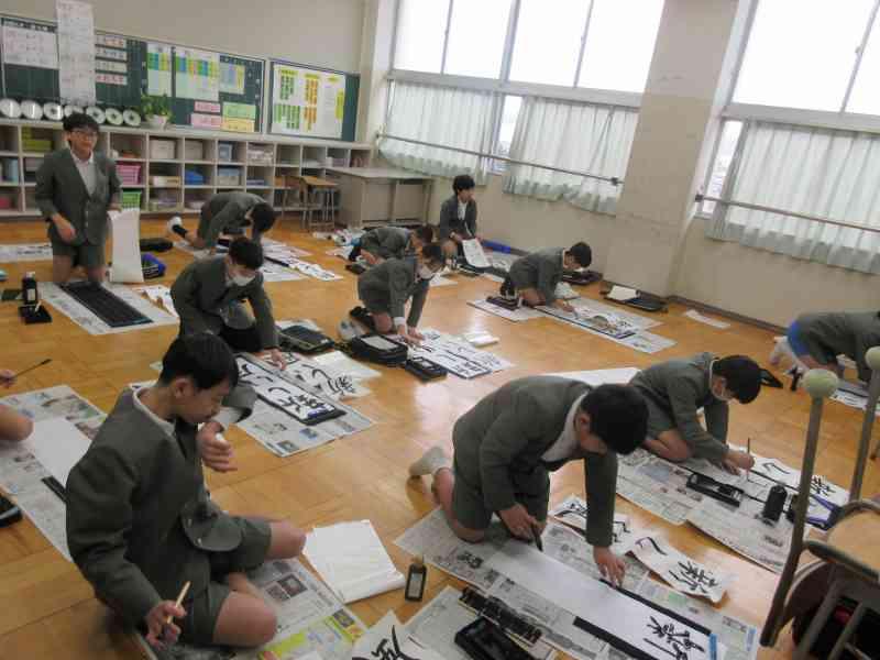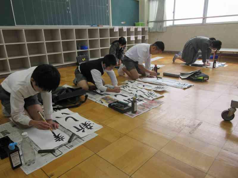 今日、書き初め大会が行われました。久しぶりの学校で少しソワソワする中、いざ始まるとひとりひとり集中して取り組んでいました。何度も何度も自分が納得いくまでがんばっていました。