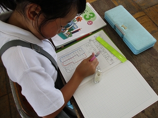 黒板に図をかきながら説明する力、ノートに数直線図をかく力、ペアで相手の考えを聴き理解するとともに、自分の考えを伝える力、いろいろな活動を支える思いやりの心や協力する力など、この1時間で教科を越えた様々な力が身に付くと感じました。