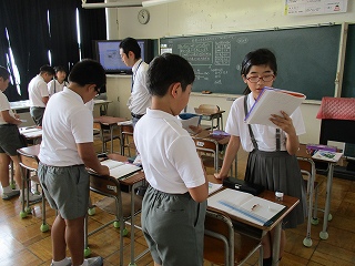 調査は、5つの視点で行われ、今日の授業は、ここまでの学習の中間発表です。どのグループも発表形態を工夫し、聞く人により分かりやすく内容を伝えようとしていました。発表内容は以下の通りです。