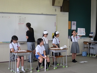 調べたことを劇にして、発表していました。病院の数を種類ごとに調べ、それぞれの病院に、お年寄りにやさしい工夫やコーナーがあることを伝えていました。劇仕立てにしたことで、内容がとてもよく伝わりました。