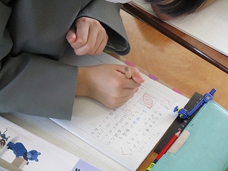 黒板に書かれた課題、図、そして自分の考えを、しっかりとノートに書いています。