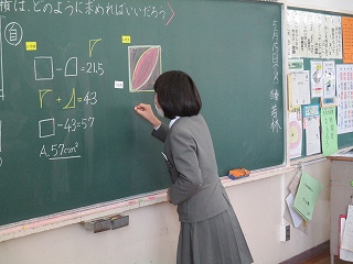 黒板に式や言葉を書き込みながら説明することで、考えが明確になるとともに他と学びを共有することができます。