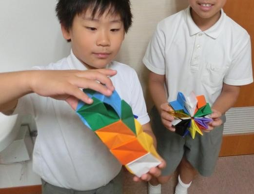 3年生と5年生が手作りの「折り紙マジックショー」をしにきてくれました。みるみるうちに形が変わり・・・目を丸くしてしまいました!!