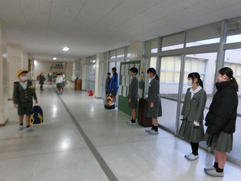 寒い玄関でも元気いっぱい「おはようございます!!!」毎日続くあいさつ。企画委員会の当番さんがあいさつに出てくる前から、自分たちできちんと立って全校を迎えてくれるボランティアさんです。